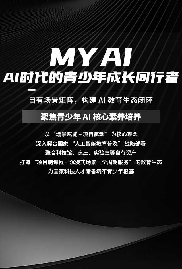 MYAI 紧密契合政策导向,以 “自有场景 + 项目制课程 + 专业团队” 模式,将政策要求转化为可落地服务,适配全学段培养路径与真实场景实践需求,为青少年搭建契合国家人才导向的 AI 培育平台,也为合作伙伴提供创业新赛道。